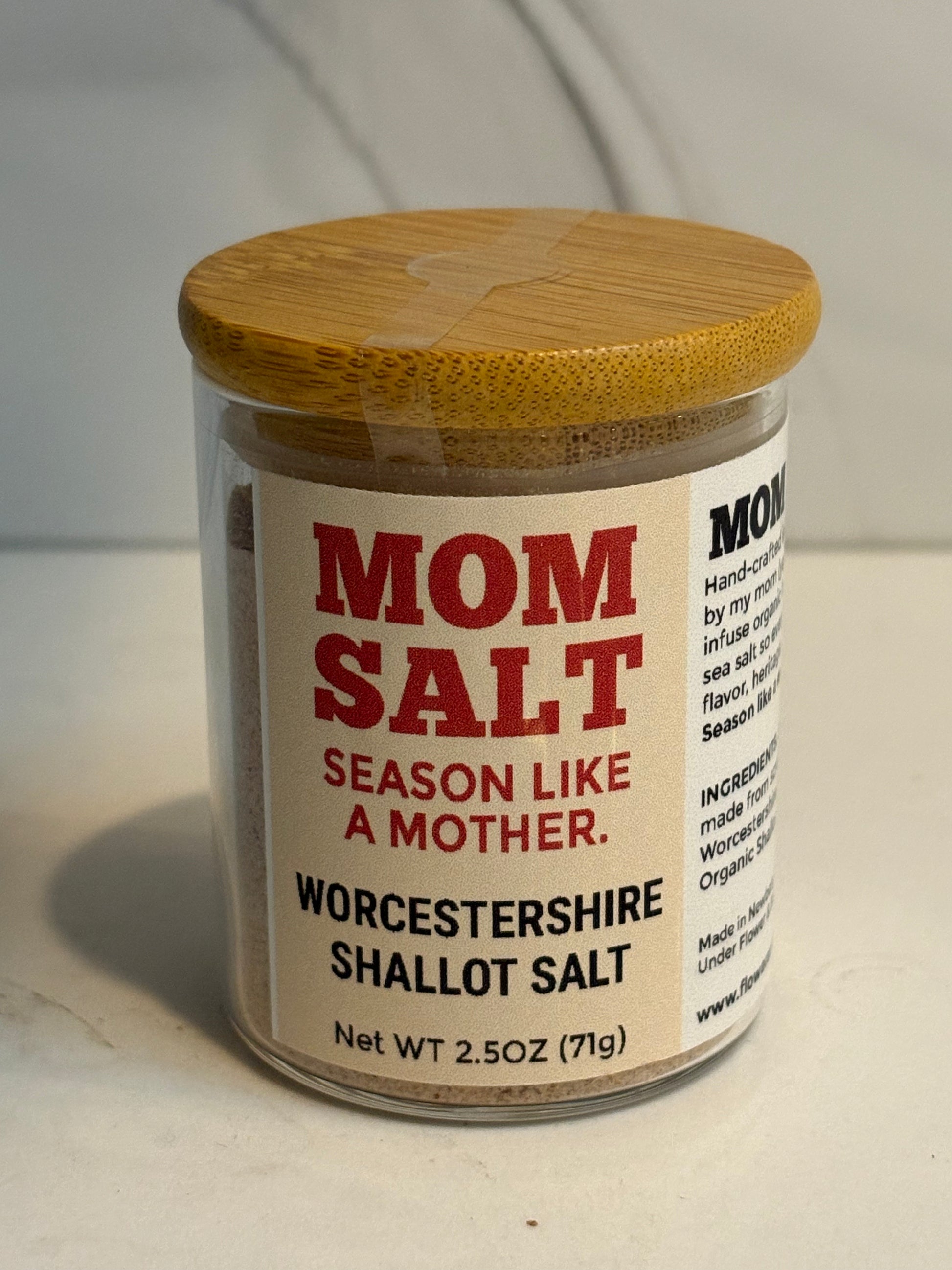Worcestershire Shallot Salt is Mom Salt’s cult favorite — a savory, tangy, umami-packed blend built on a base of her own housemade Worcestershire sauce, slow-fermented for over six months. Add in shallots and a pinch of sea salt magic, and you’ve got a flavor that’s equal parts bold, rich, and wildly versatile.